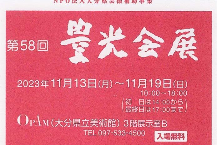 2023年11月13日(月)~ 11月19日(日)、OPAM(大分県立美術館) にて第58回 豊光会展が開催されます。 皆様お誘い合わせのうえ、お気軽にご来場ください。